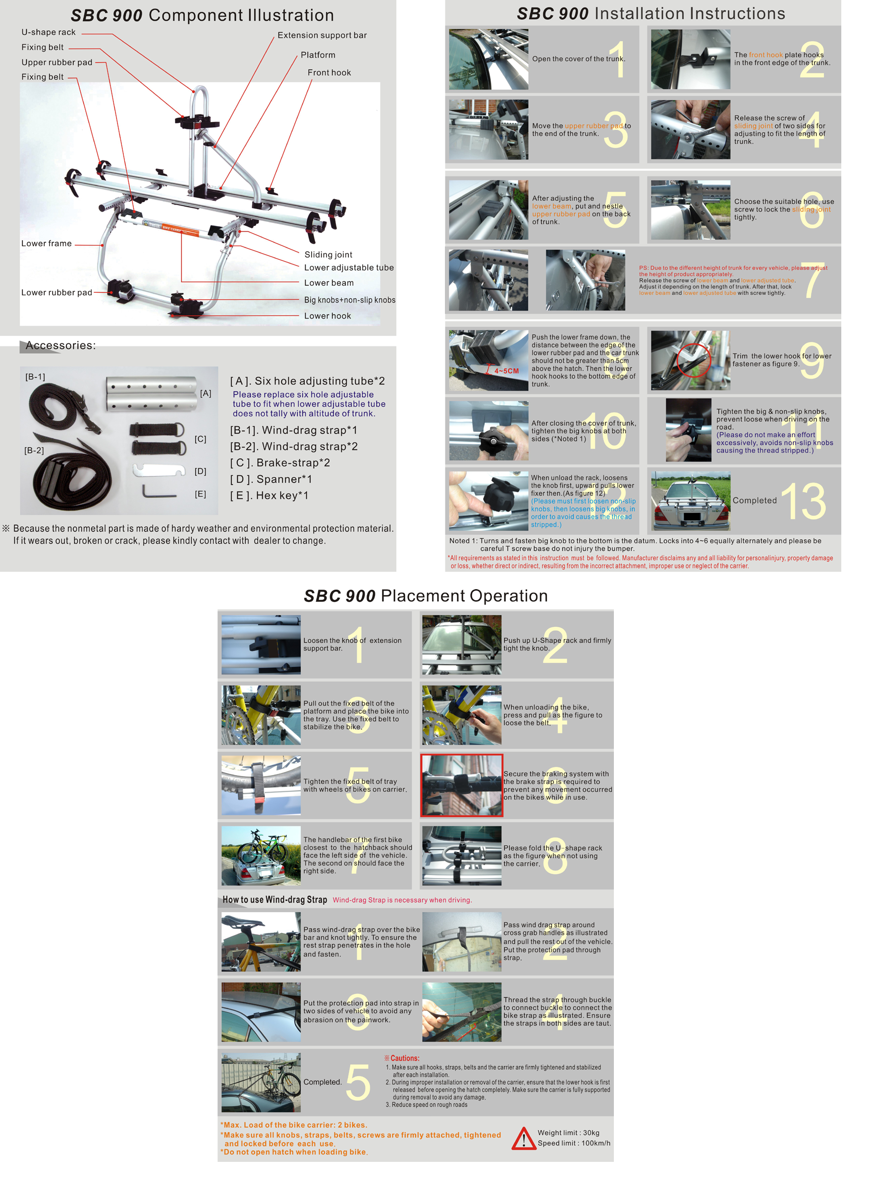 Install Explanation Home Bike Carrier Luggage Rack Accessories Bike Carrier SBC-01 SBC900 SBC-02 SBC905 SBC6A SBC-902 SBC-05